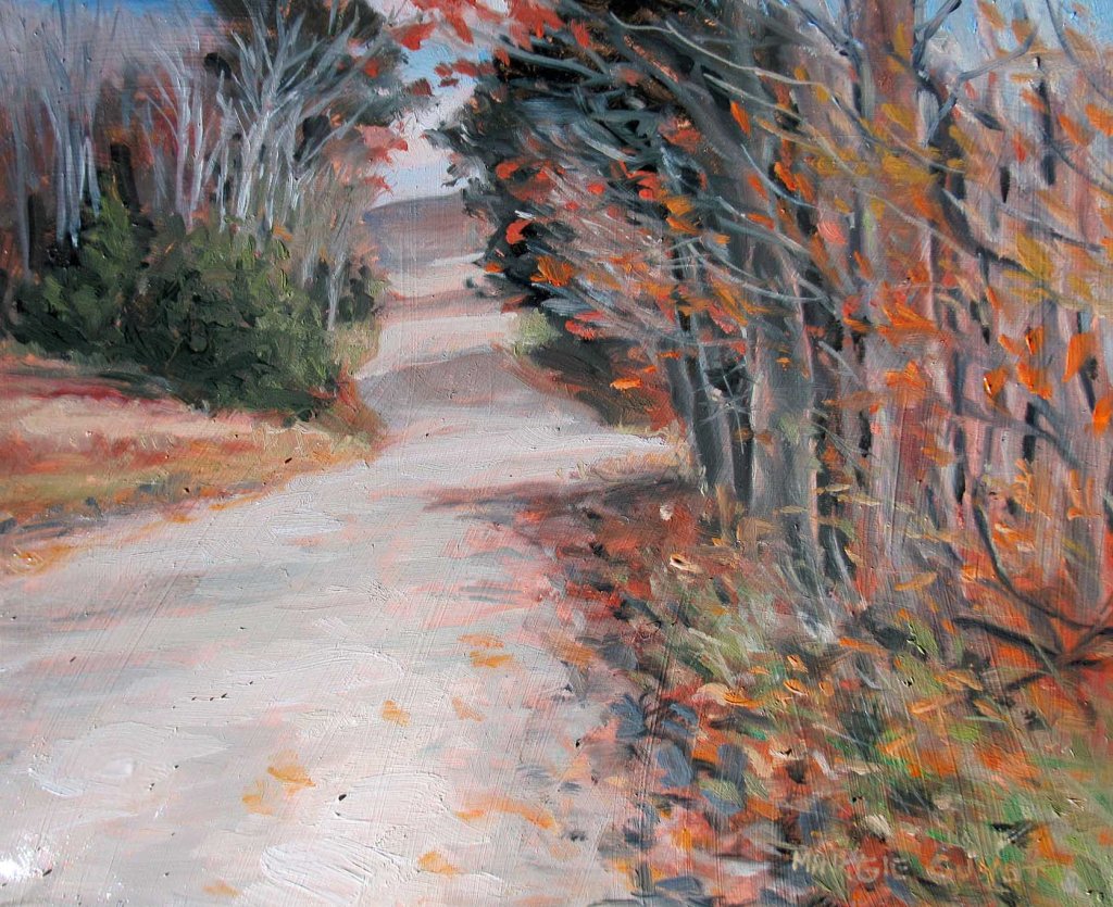 Two sunny days lately — a rare treat! But rather chilly. Yes, I’m spoiled. This first painting I set up on the Swamp Path and painted the view. I’d started it yesterday afternoon but had to quit. I was chilled to the bone! Went out and finished it this morning.