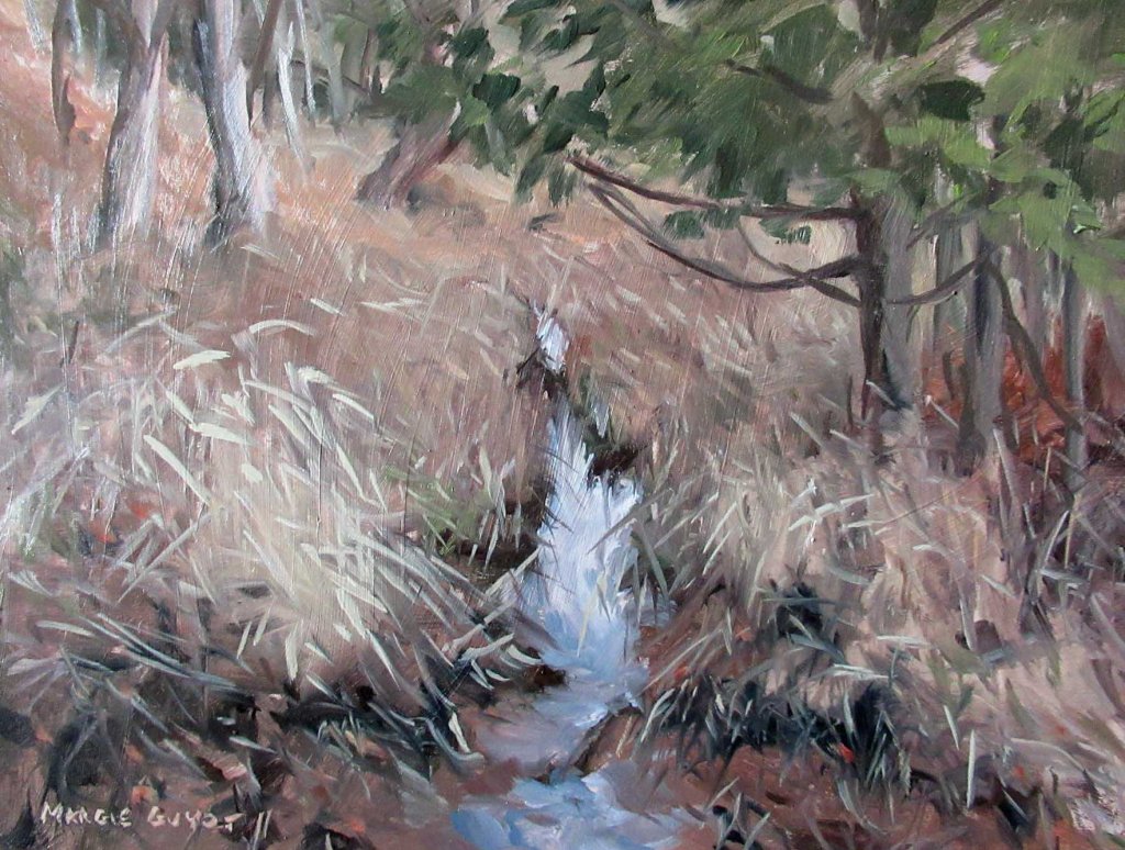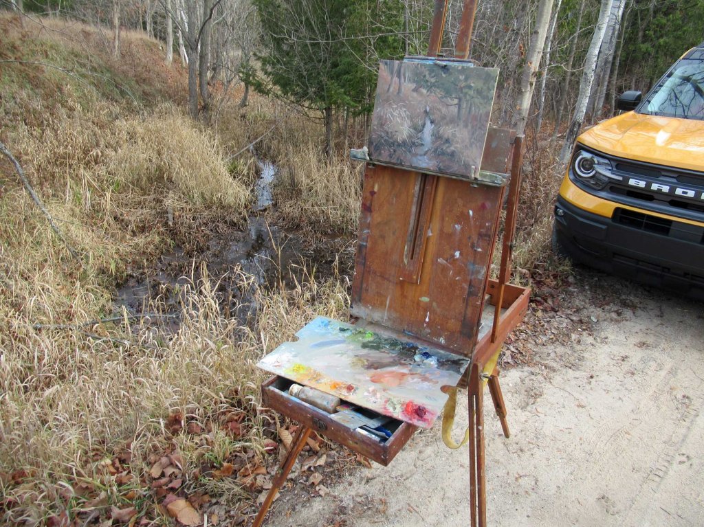 I also painted a tiny creek along Bennett Road, in between US 31 and Farrell Road. As I drove past, a reflected gleam caught my eye. Of course I had to go back and paint it! I don’t know the name of this creek, so I’m titling this painting “Nameless Creek”.