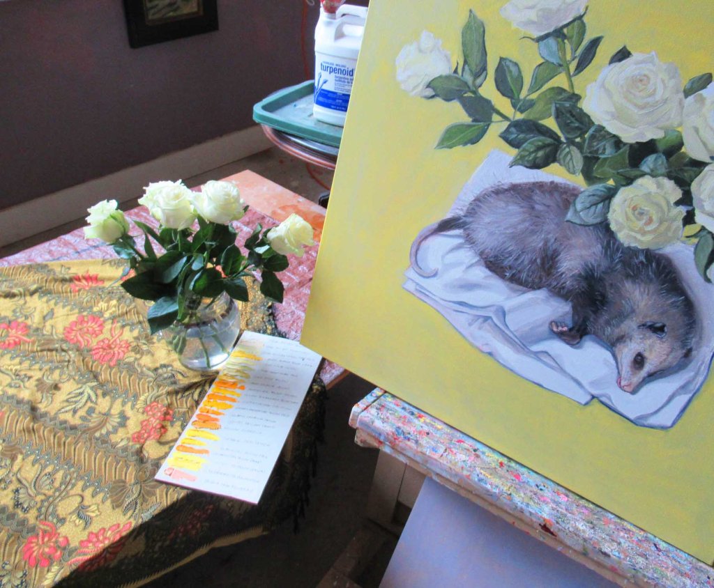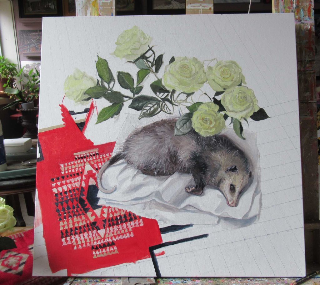 Oh, and then I realized the intricate red pattern just wouldn’t look right with the possum: