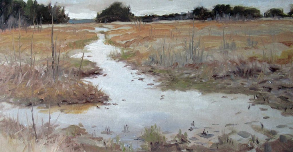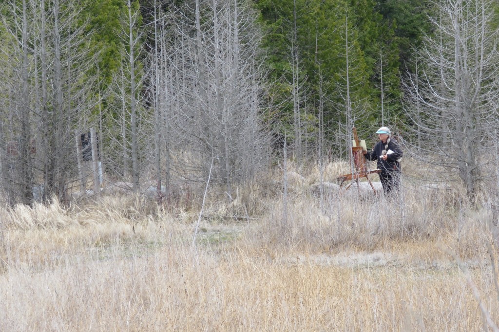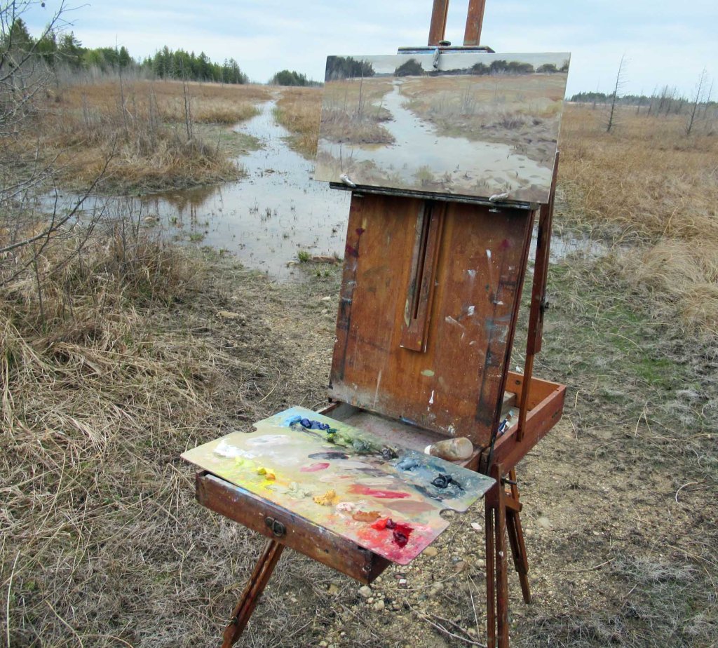 My friend Sarah called this morning, inviting me to join her to go to Wilderness State Park. She was in search of wild pitcher plants. “Bring your paints along, if you want,” she said. So while she traipsed off down a trail, I set up my easel and painted this. Quite a beautiful area. Here’s my setup: