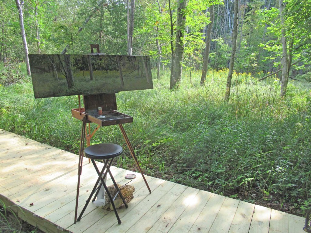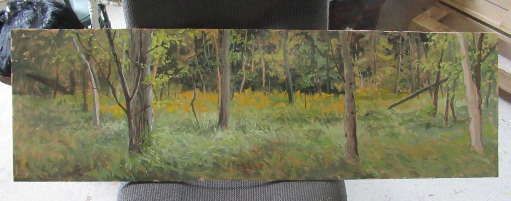 I wish I had photographed my painting from that first painting session. But it was shockingly hideous (as they usually are in the beginning). So I finally felt brave enough to photograph it on Day 3. More to come. As I try to remind myself: the key to making a successful painting is to learn how to control one’s panic. So it’s not done yet, but getting there….