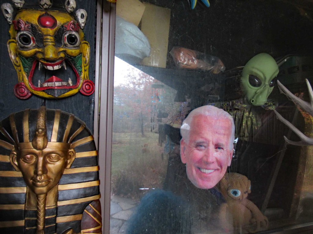 It was a typical, dreary, cold, drizzly day, so I hung out in the studio mostly, slugging away. Occasionally I’d take short breaks, doing stuff like bagging up clothes for Goodwill, potting grass for my cats’ winter use, taking a photo of the sky (see below)….