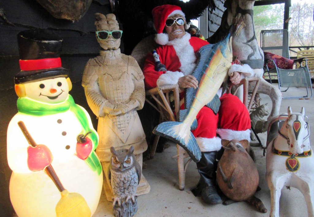 Still in a celebratory mood, I dressed Rufus, my fake man, in his Santa outfit and dragged out the vintage blow-mold snowmen. I’m all set for the holidays. Yippee!!!