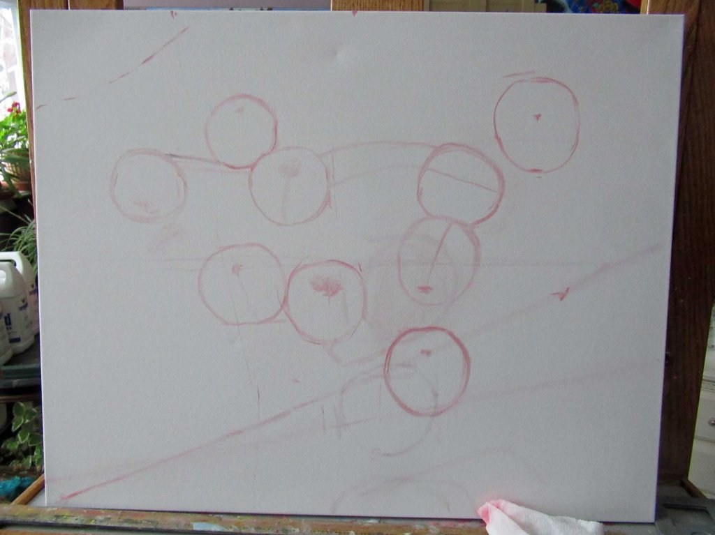 Notice there have been a number of wipe-outs and re-do’s. I usually start by picking out an object that’s in the center and kind of gauge everything else after that.