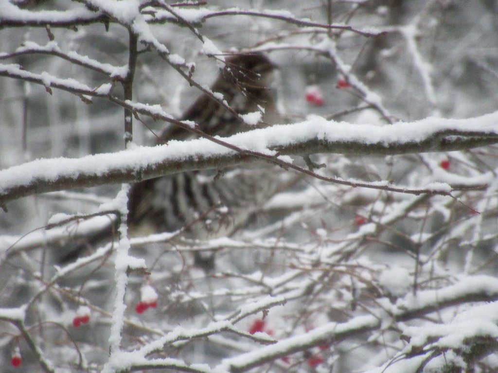 Big snowstorm going on here in northern Michigan. I noticed a ruffed grouse sitting in the high bush cranberry bush in back of the studio. Greedy squirrels had raided most of the berries already. A few still remaining for the grouse….