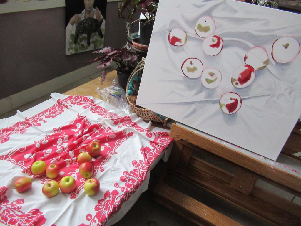Yes, that’s Picasso. And what’s that? More apples? ‘Fraid so, my dears. But at least this time I’ve picked out a different tablecloth.