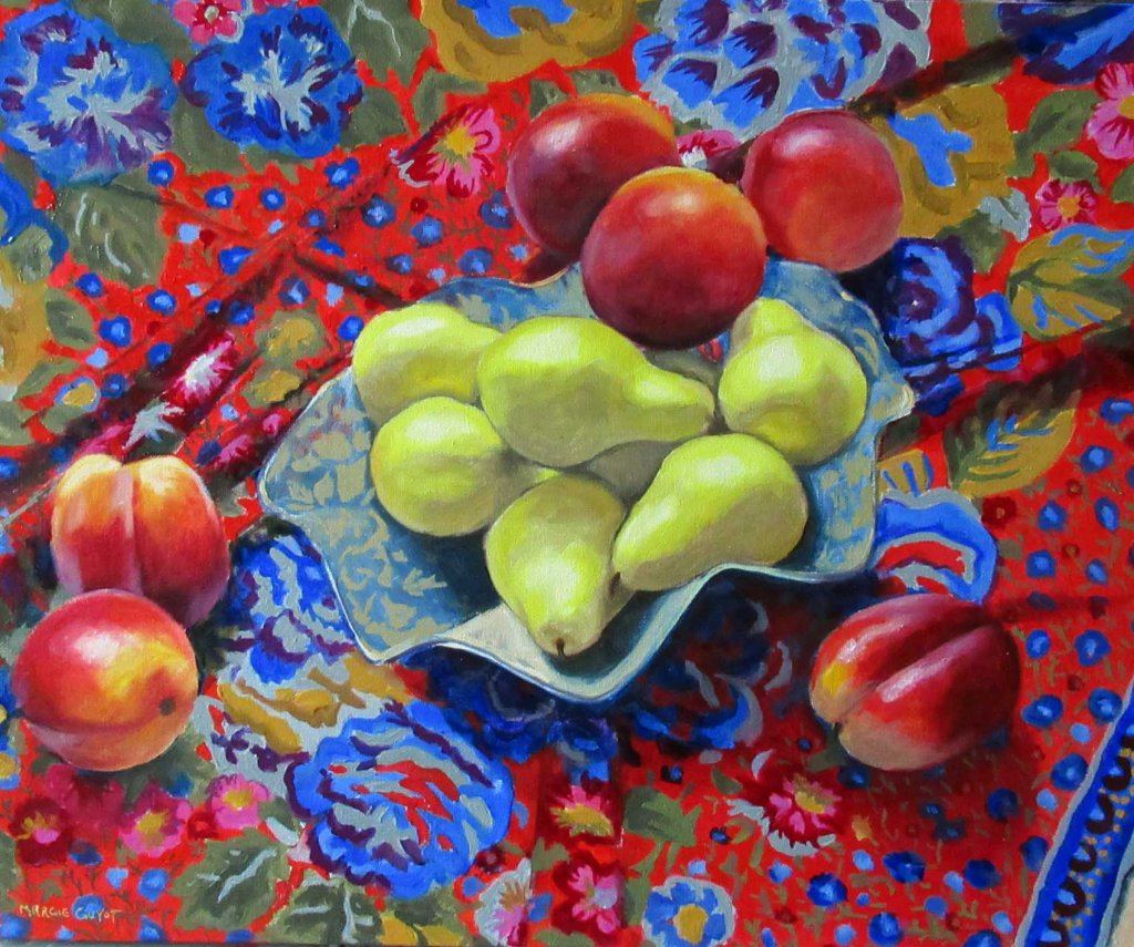 I’m calling this “done”. I could probably fiddle with this for days, but then I’d end up in a looney bin. I painted it to escape the drab, dark, gloomy winter days of northern Michigan. There are only so many times I can tolerate painting variations on “Swamp in Winter”. I love a good challenge (this was!) and bright, garrish colors. No tasteful beige for me, thank you. Not sure what’s next. If I’m lucky, I’ll wake up sometime during the night with inspiration for a new one.