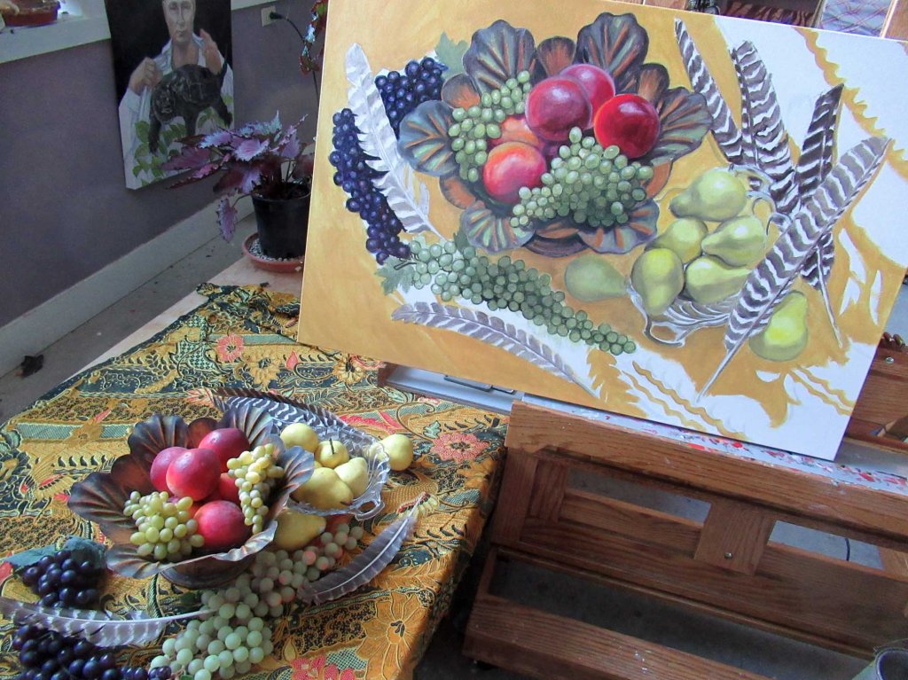 All I did today was tackle those grapes. What more can I possibly say? Very cold outside — around 18 degrees. So I’m grateful to have a quiet, warm studio!