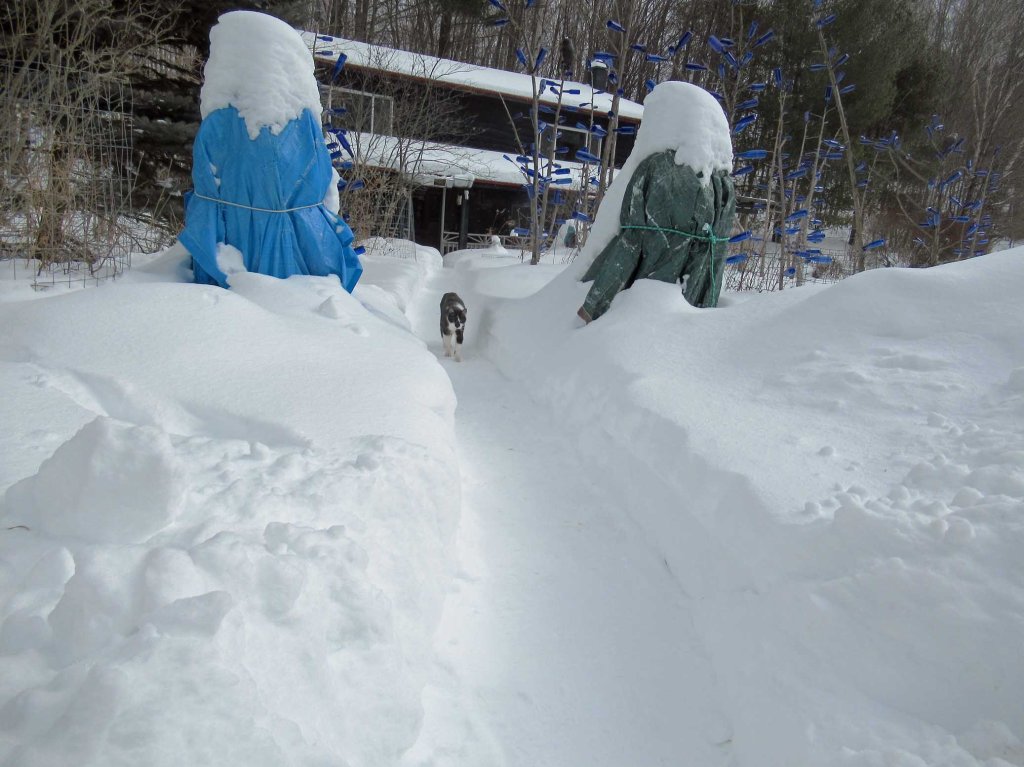 The snow continues! Here’s my loyal cat, Picasso, coming down the path to the studio.