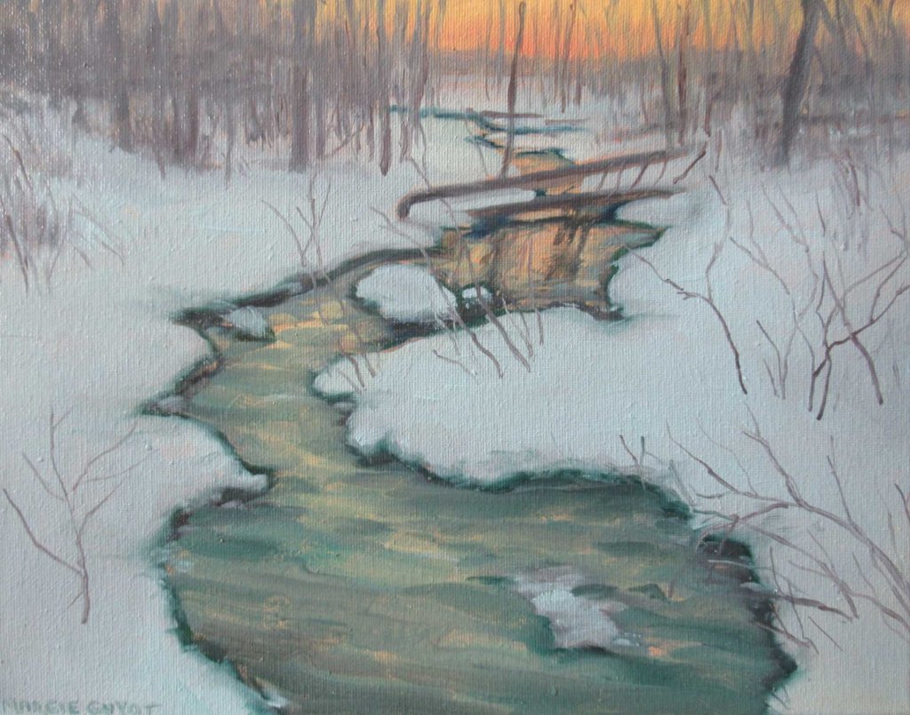 “Guyer Creek — End of February” — oil on canvas 11×14″ by Margie Guyot