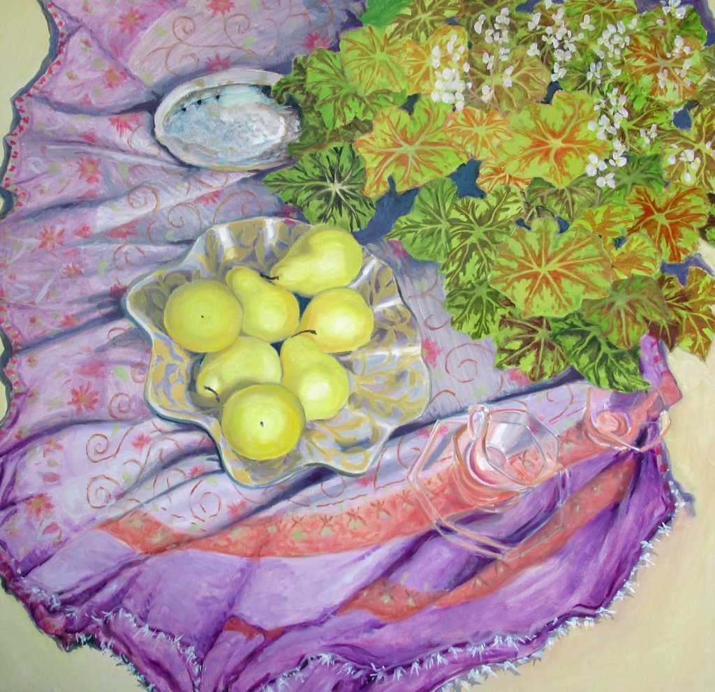 This is the painting that got me inspired. I did it a year ago. One of my friends has me babysit a few of her houseplants while she winters in Florida. That magnificent plant is some kind of begonia. When it bloomed last year I decided to paint it: