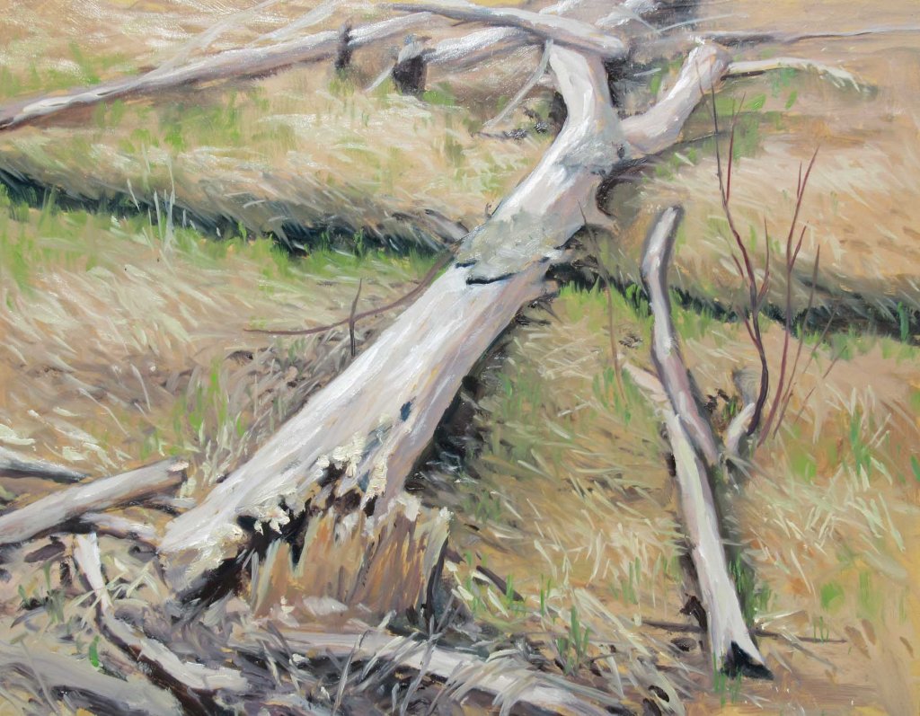 After months and months of snow (and doing still lifes in the studio), I’m quite happy to be able to get out and do landscapes again. Not a lot of green is showing yet, but things will liven up in a hurry with the Spring rains.