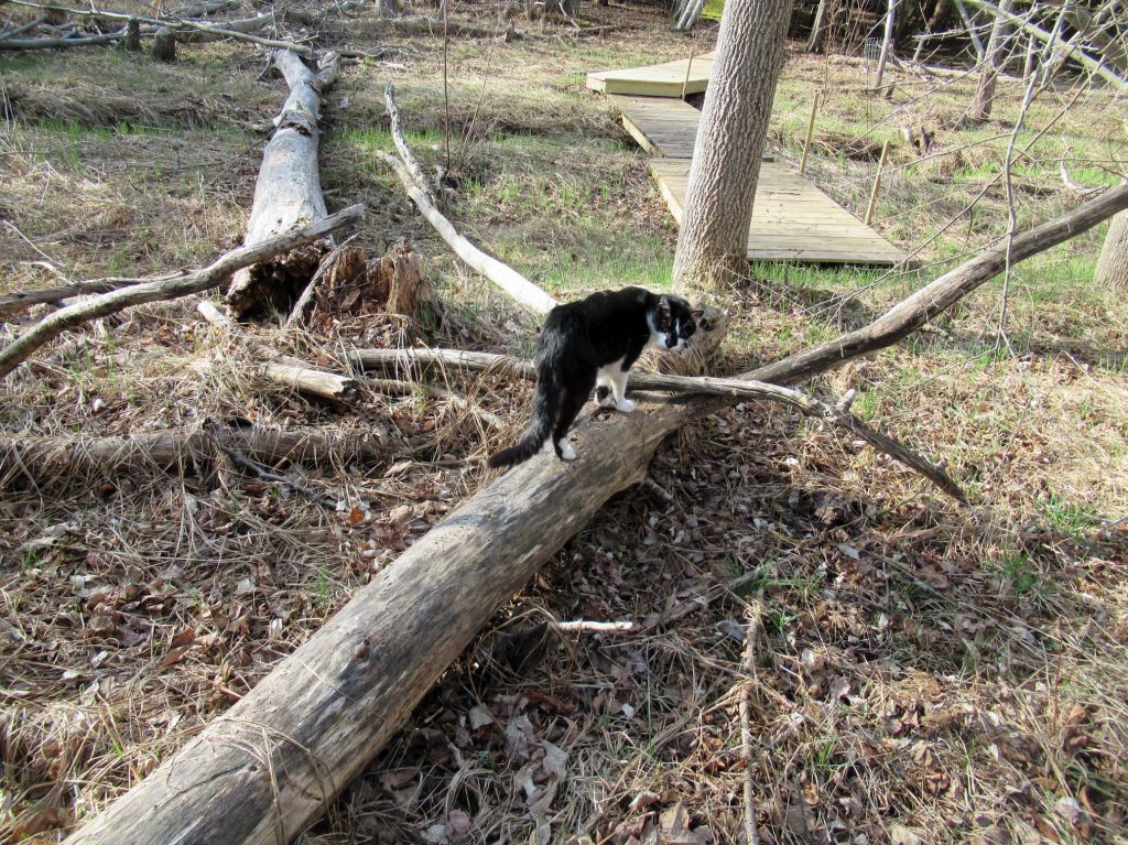 I particularly enjoy painting right around my own property because my cats love to hang around with me. Here’s Picasso. That bridge in the background was what I’d been standing on to paint the fall goldenrods painting.