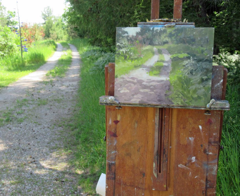 It’d been a while since I went out to paint a landscape. When spring finally hits, my priority is getting my garden and flowers and yard going. It’s a big job! Plus it’s also the time when galleries want new stuff for their walls, so it’s also what we call “schlepping season”. Exhausting!