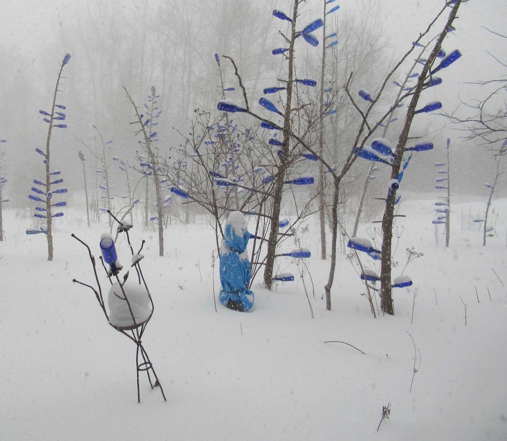 And here’s what it looks like in my front yard. The National Weather Service had forecast 1/2″ of snow for us, but the radio was saying “4 – 6 inches”. Hmmmmmm,…