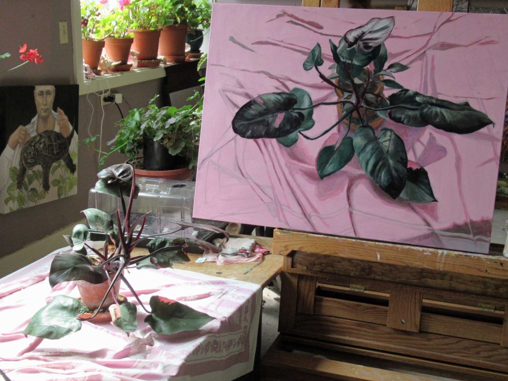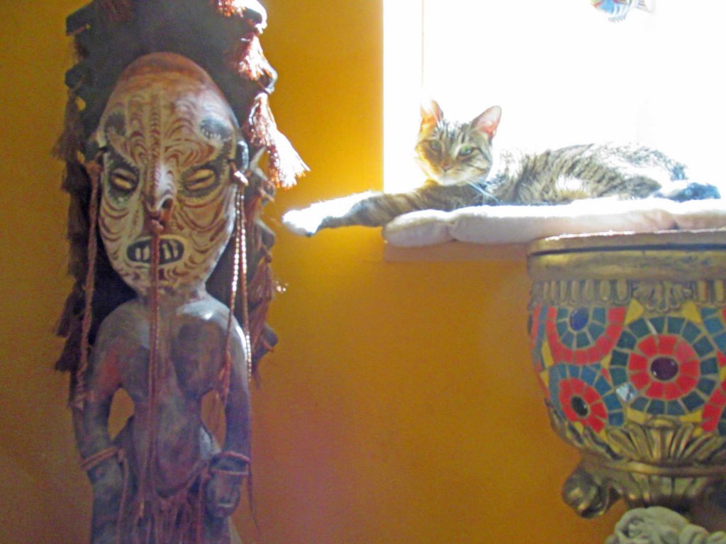 Meanwhile, my “new” cat, Mr. Kitters, snoozed in a windowsill all day. That figurine on the left was an estate sale find. It’s some kind of shaman figure from Papua, New Guinea. Hmmm…. maybe someday I’ll use it in a painting.